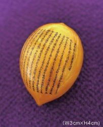 蘇鉄(そてつ)の実に彫られた般若心経